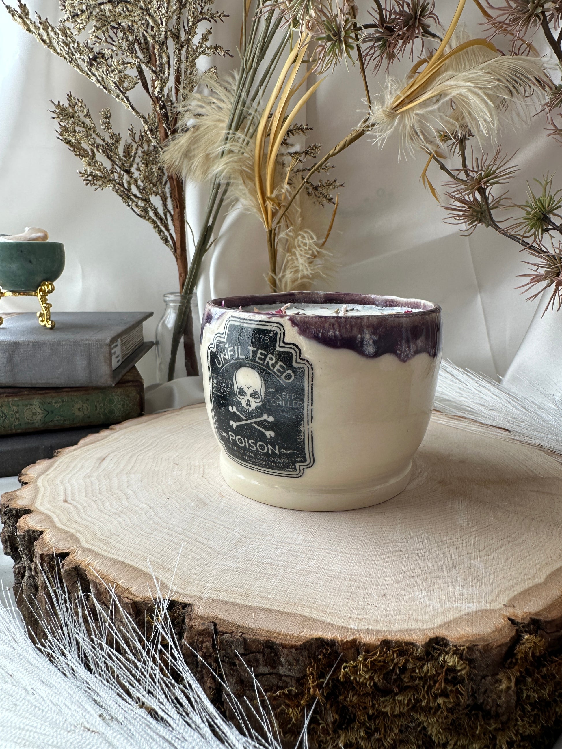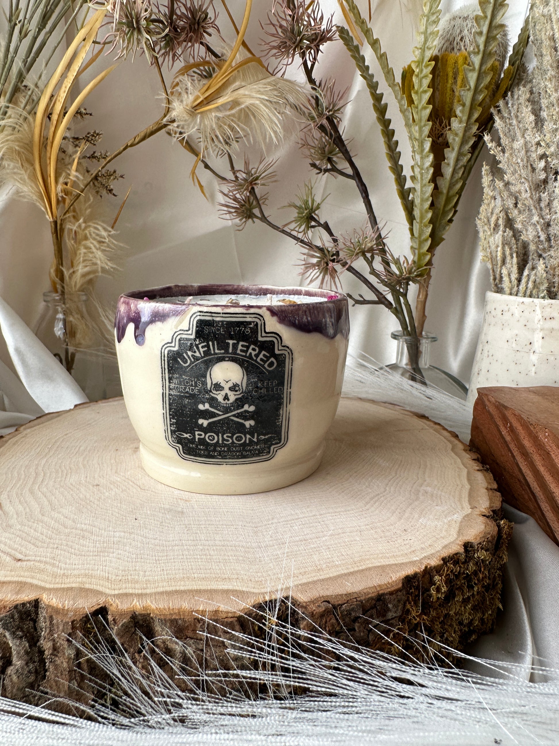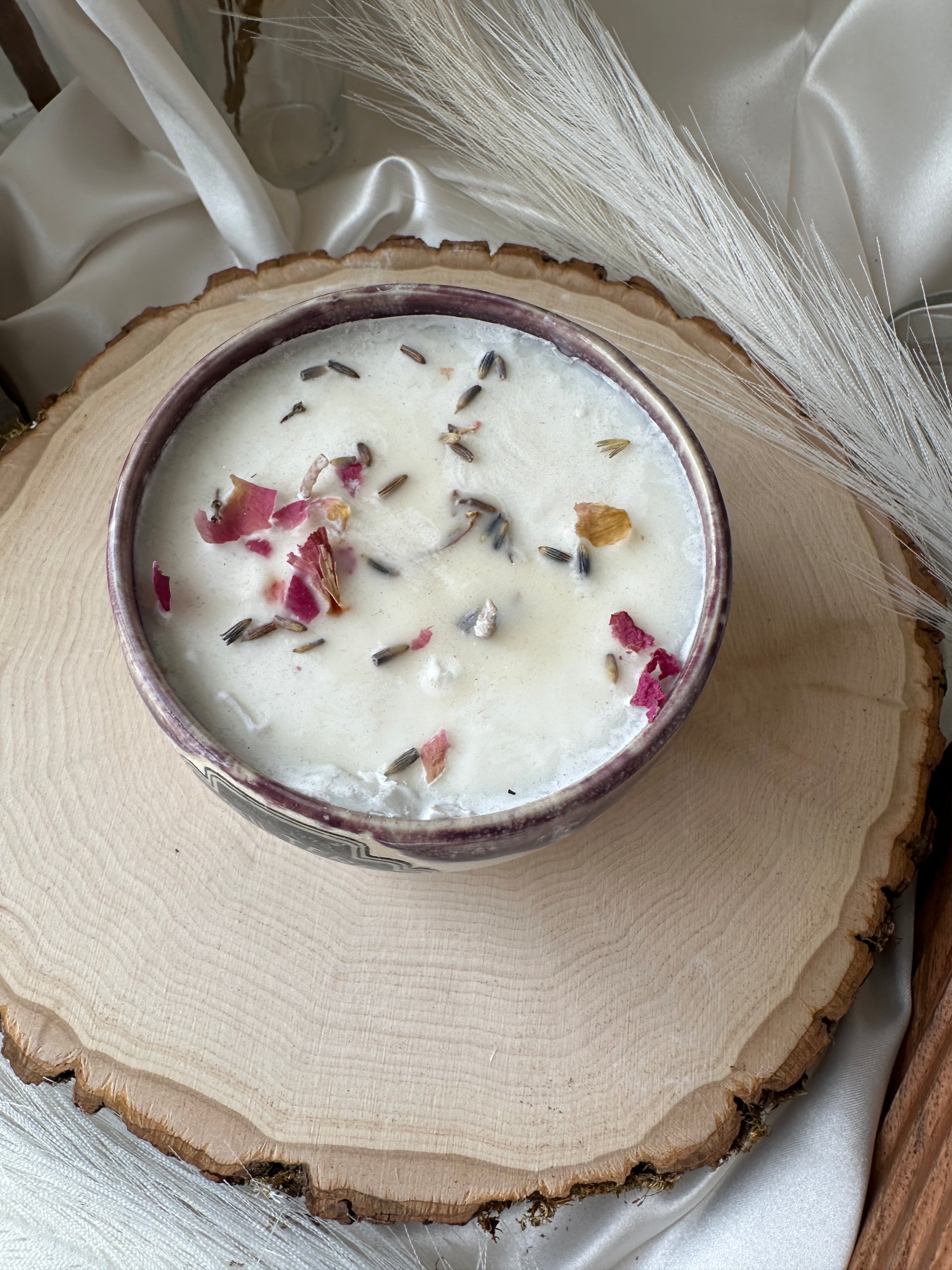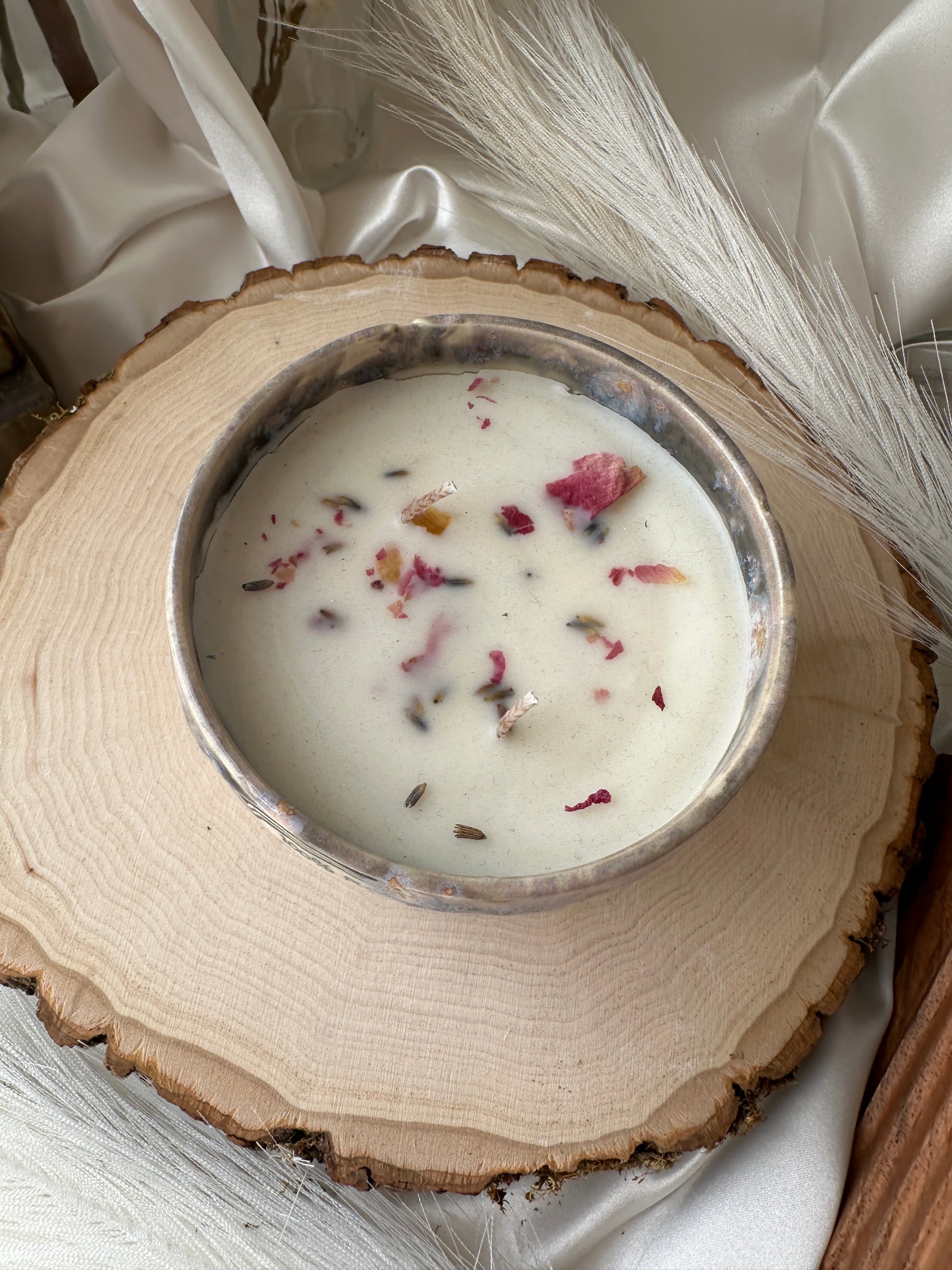 Beautiful floral scent on gold accented cauldron. Once your candle is burned, use the vessel for incense or spell work, decor or even for a small office plant. This piece is accented with real 22k gold.