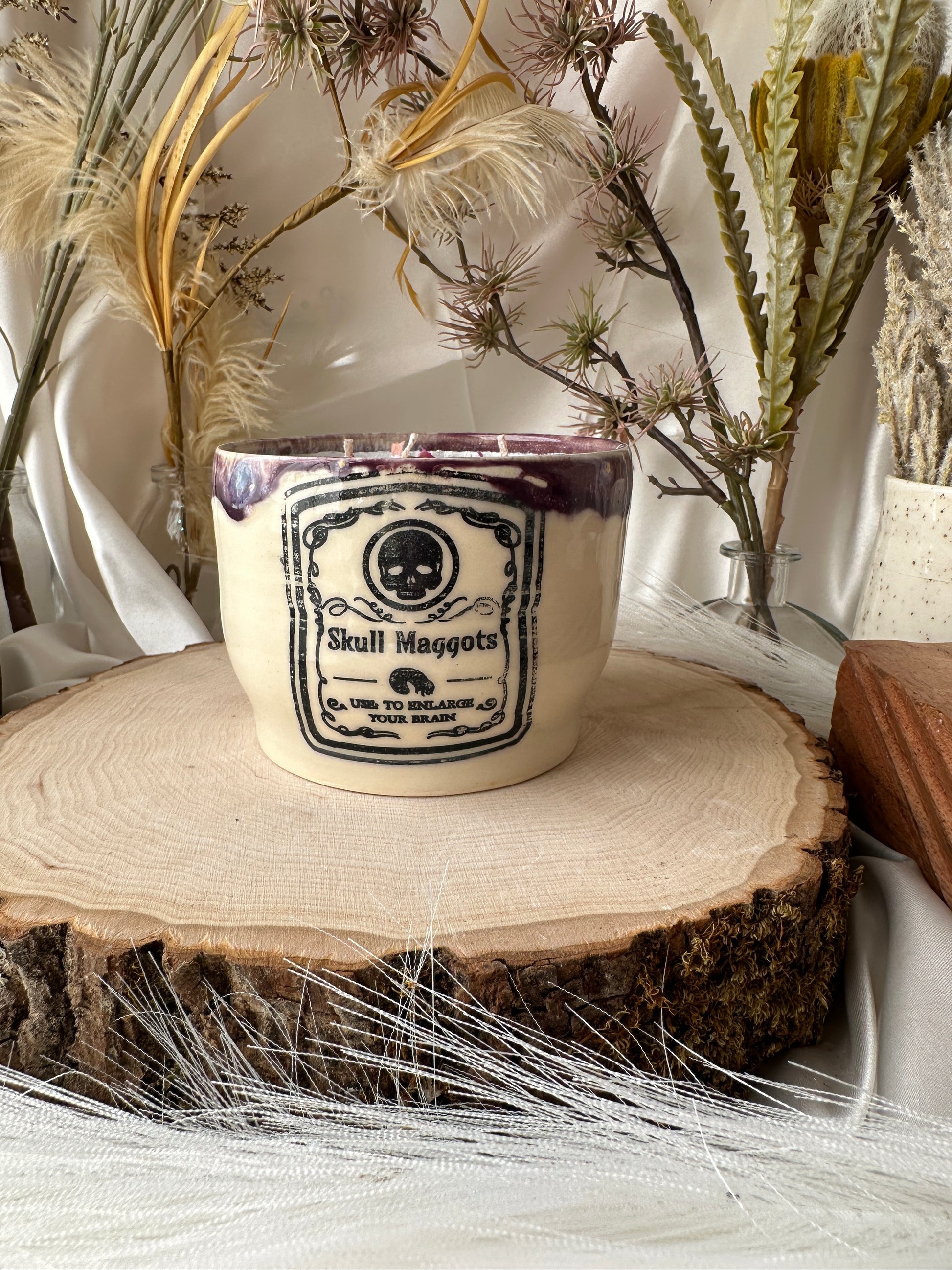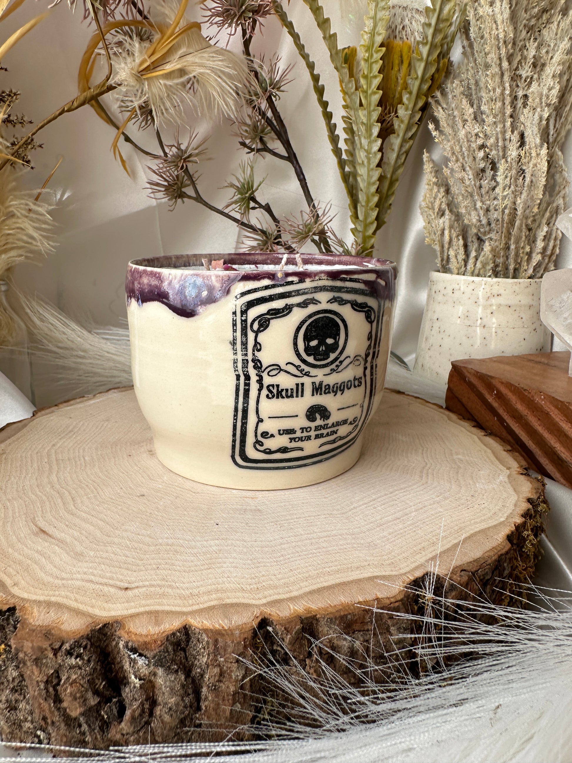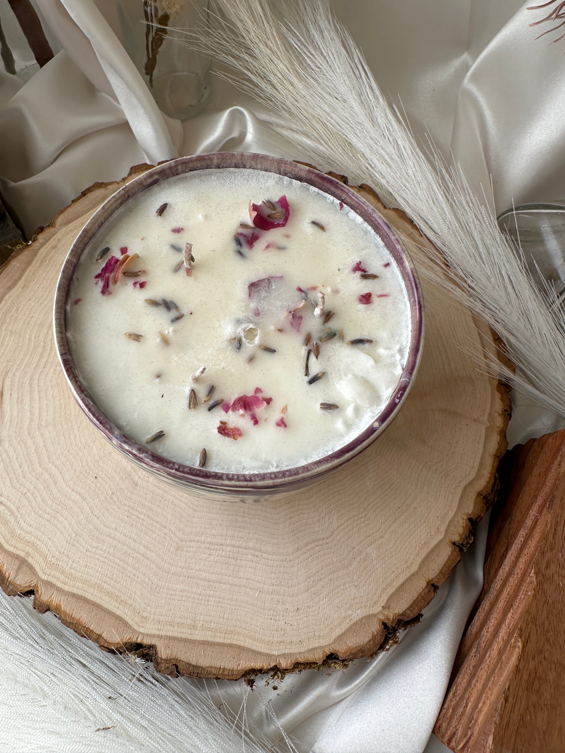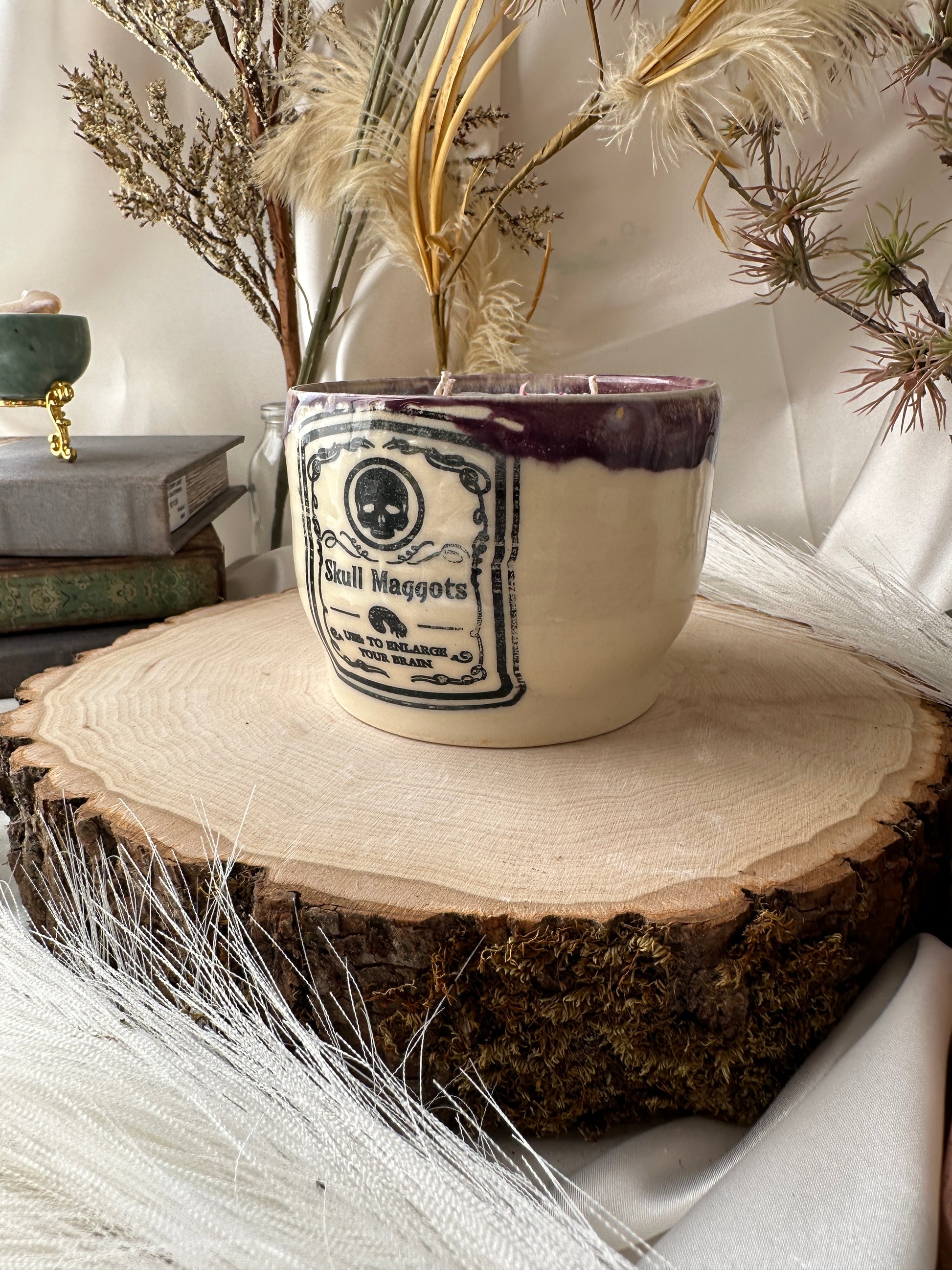 Beautiful floral scent on gold accented cauldron. Once your candle is burned, use the vessel for incense or spell work, decor or even for a small office plant. This piece is accented with real 22k gold.
