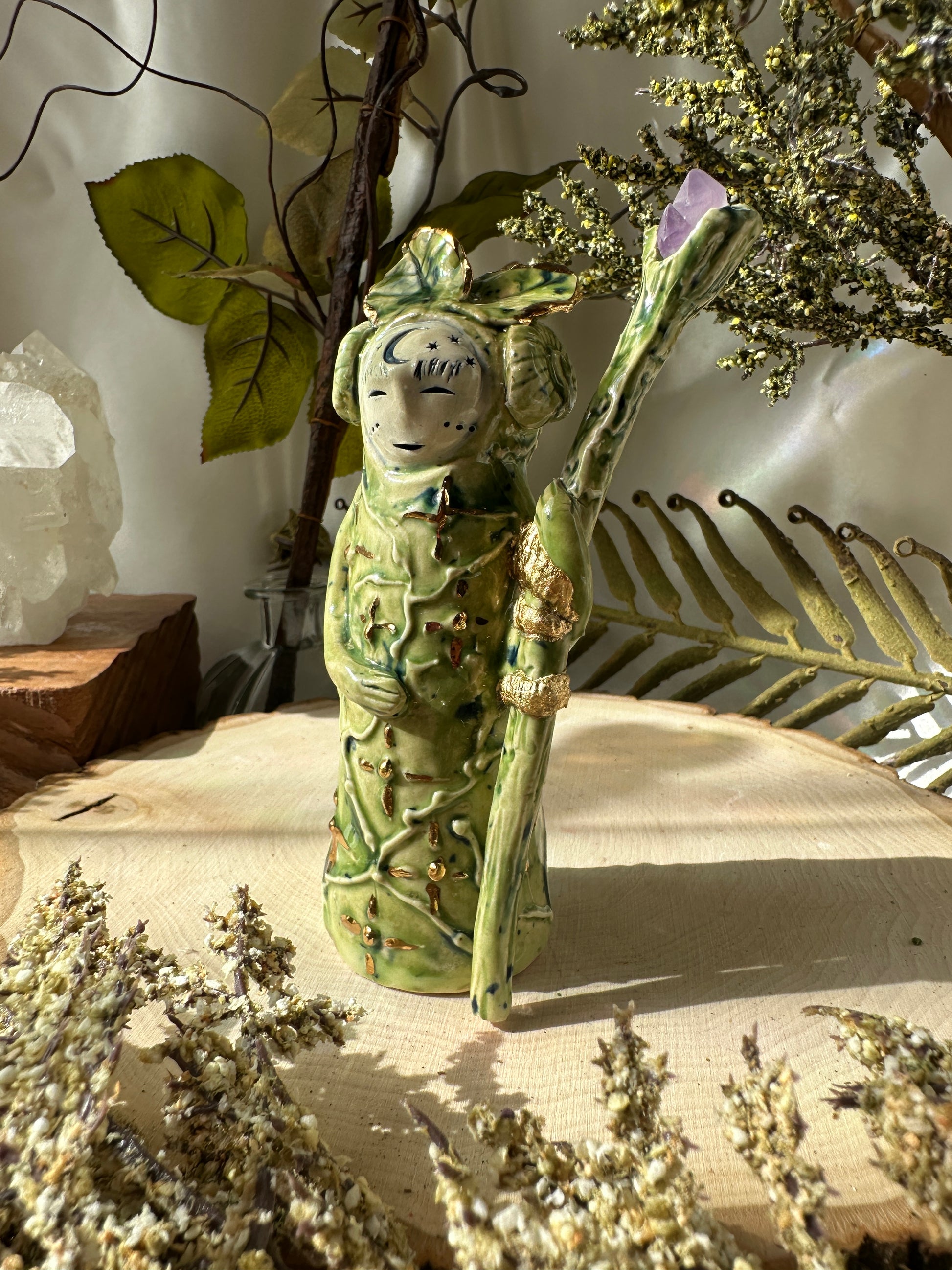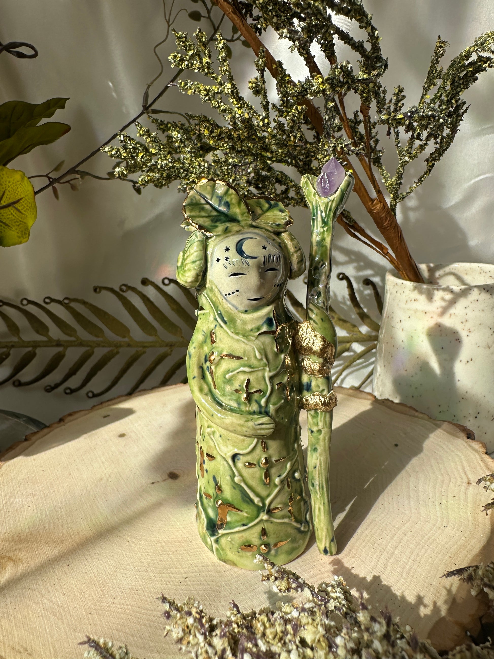 The idea of these little guardians was born early 2025. They brought such joy in a time of great struggle. They watched over me during my hiatus and were there to inspire me with new life and creative inspiration. These sprites are not gods. They don't command. They are listeners, guides and witnesses. Some appear only when they sense joy, others will appear only to those in need of them. Each has their own personality, some are wise and ancient, others are young and mischievous but all are kind and care for good humans and mother earth. They never force direction but they do nudge awareness. I'm so excited to send them out into the world to join you on your journey and sacred space. I hope they bring whimsy, magic and much joy to your life.