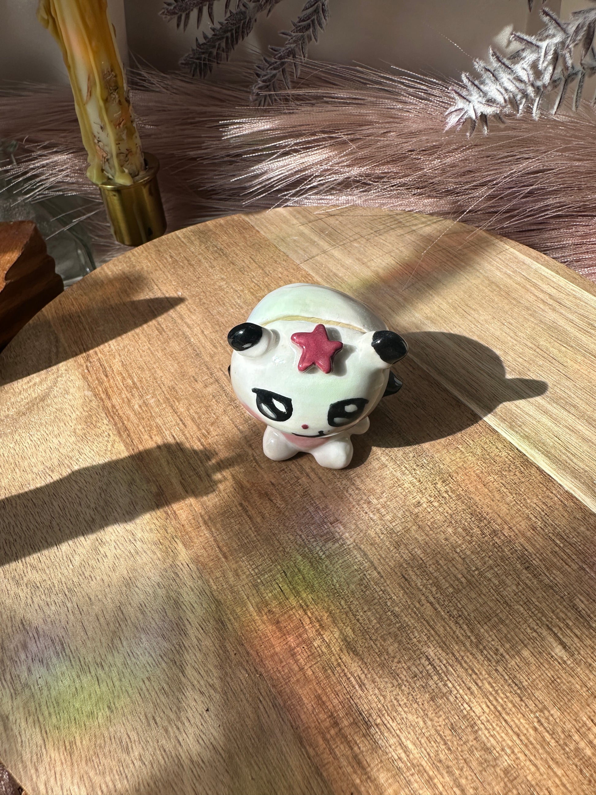 These cute little mighteez figurines will not only brighten your space but they also function as PC holders!! They are ceramic and hand made. Three layers of every single color was done by hand as well as the facial details. Enjoy!!