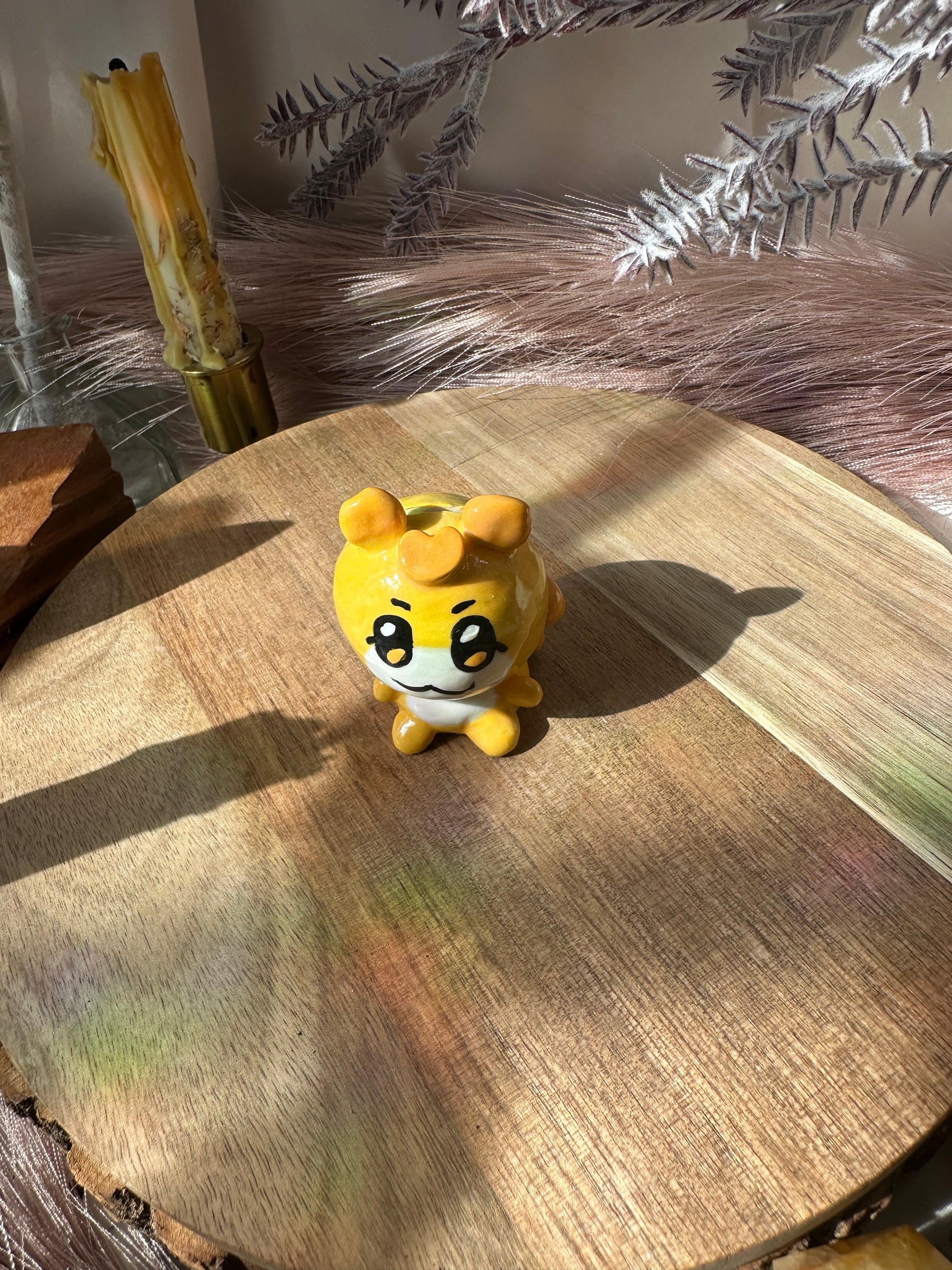 These cute little mighteez figurines will not only brighten your space but they also function as PC holders!! They are ceramic and hand made. Three layers of every single color was done by hand as well as the facial details. Enjoy!!