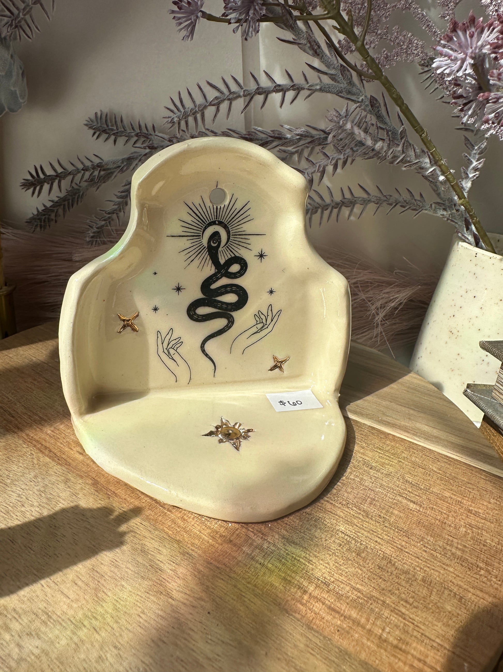 These mini altars are perfect for small spaces, they are beautiful and take up little space. They even have a place for stick or cone incense as demonstrated in the last two pictures.