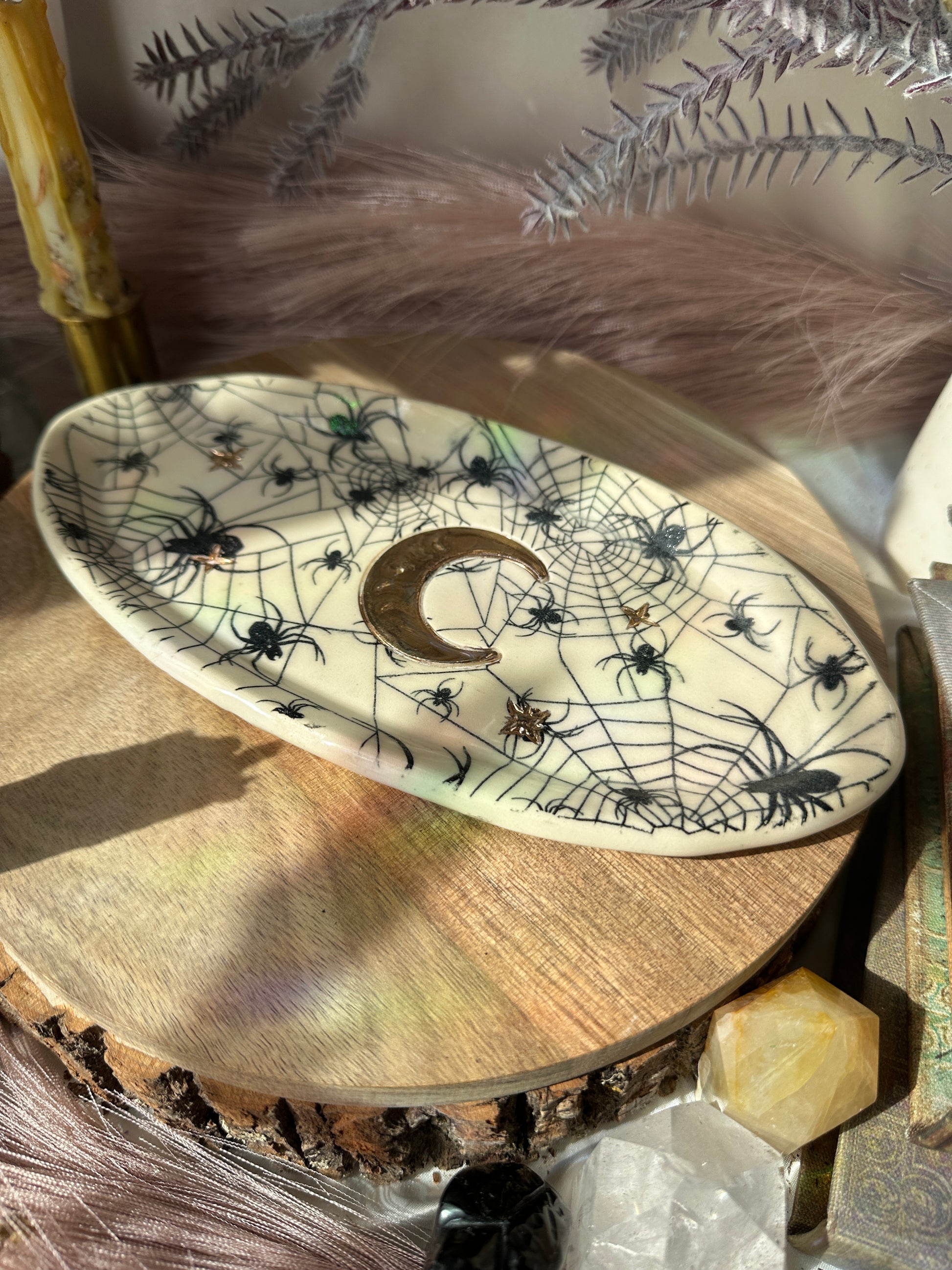 I wanted to make a batch of trinket dishes that double as Incense burners. So while this piece is perfect for trinkets. It hold a little hole in the middle for stick incense. Use as you wish! It is accented with real 22k gold.