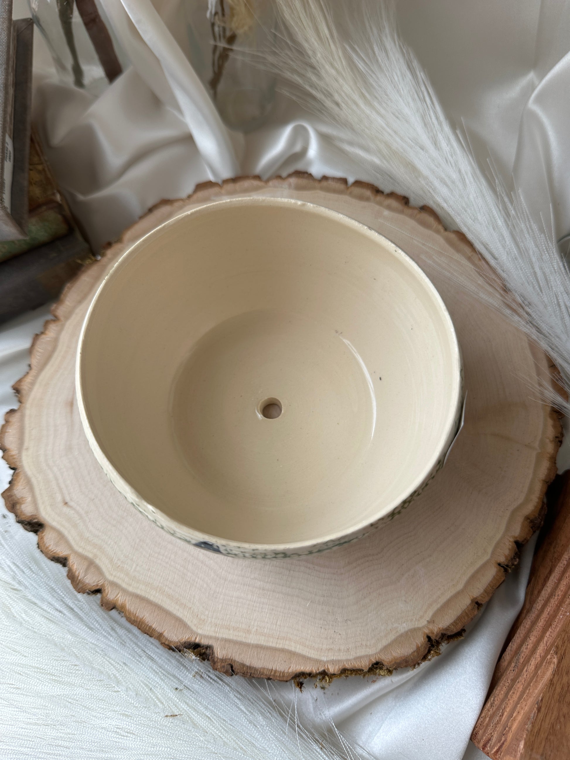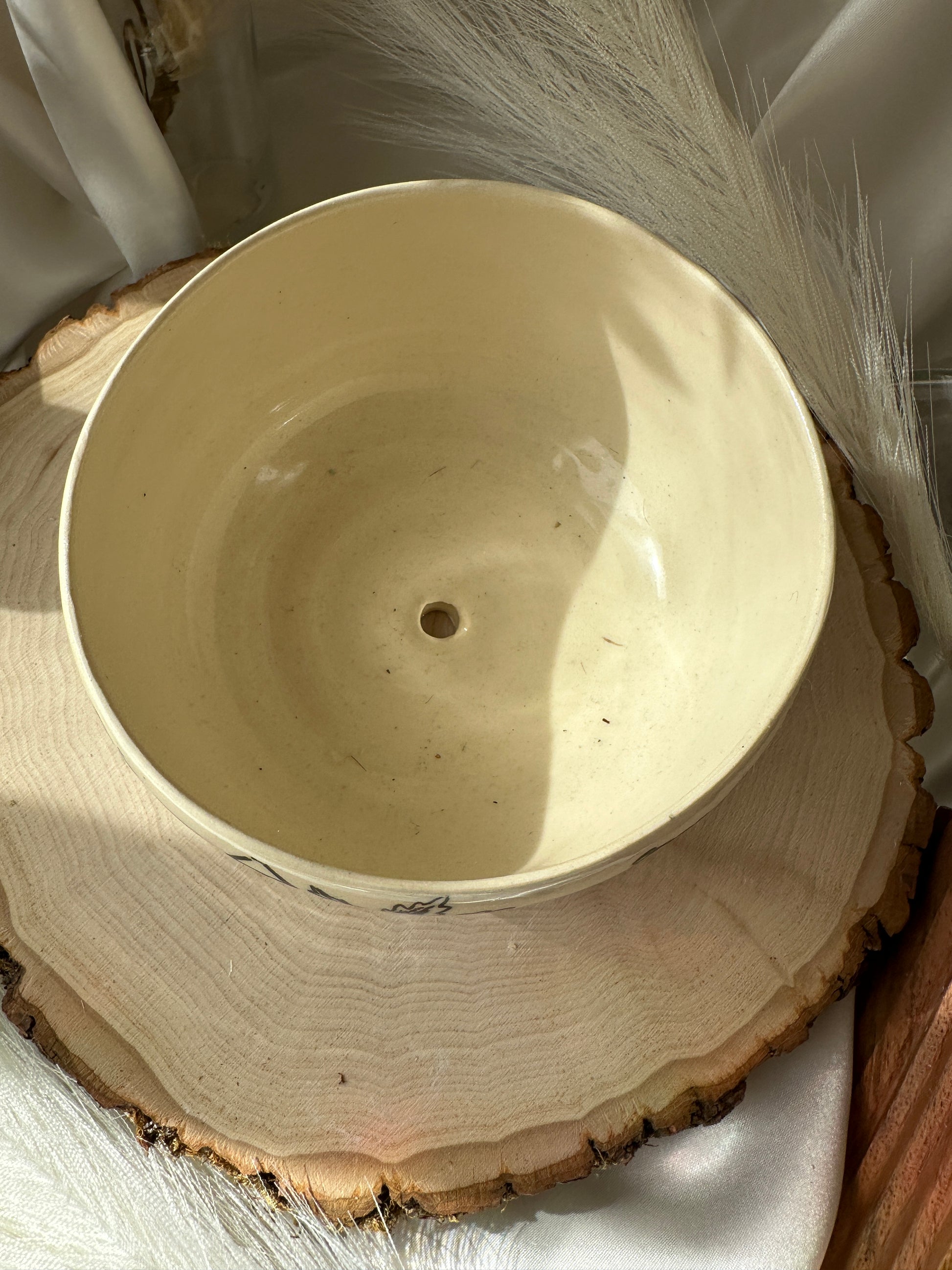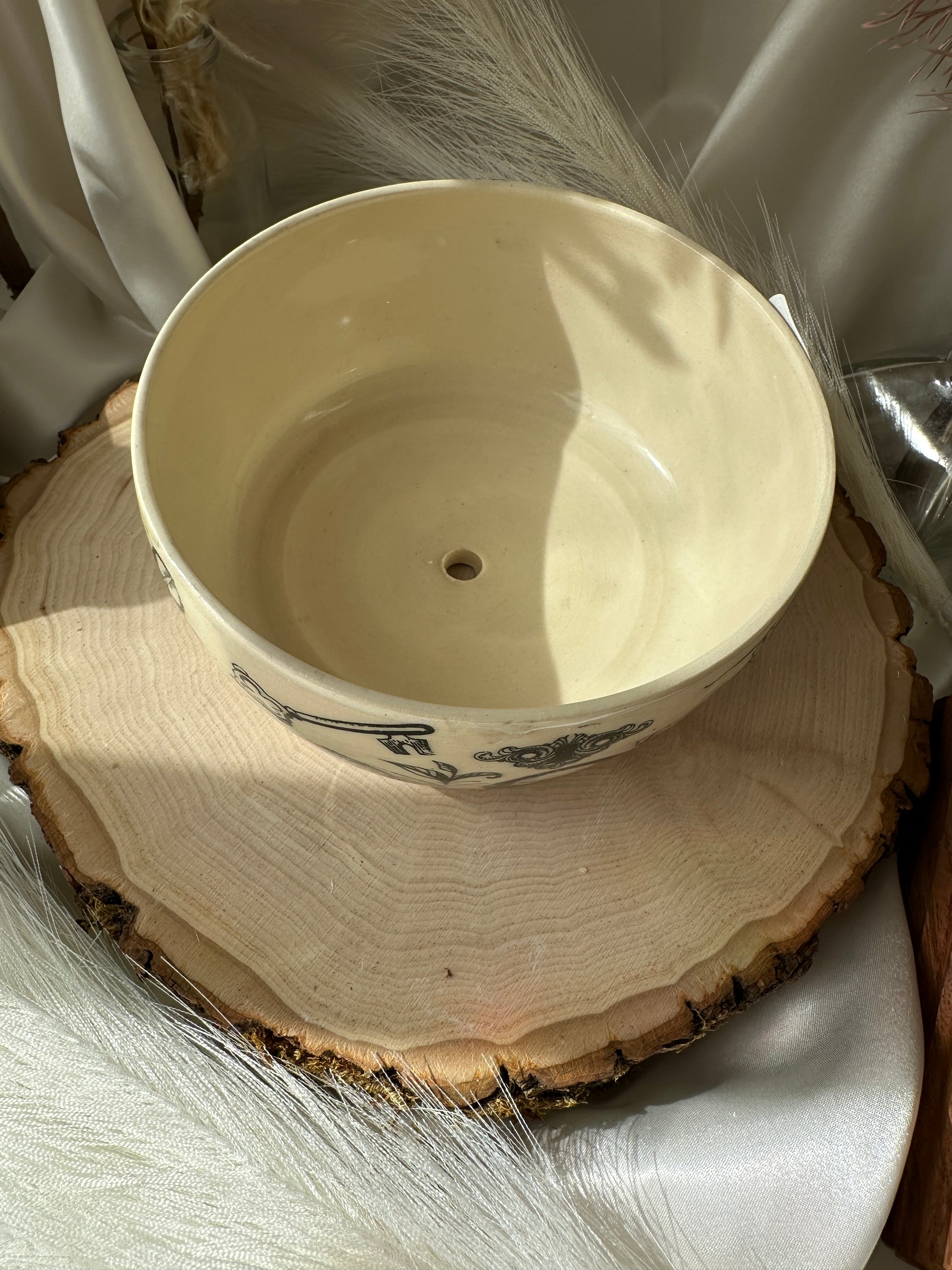 These witchy ceramic planter is wheel thrown and has a drainage hole.